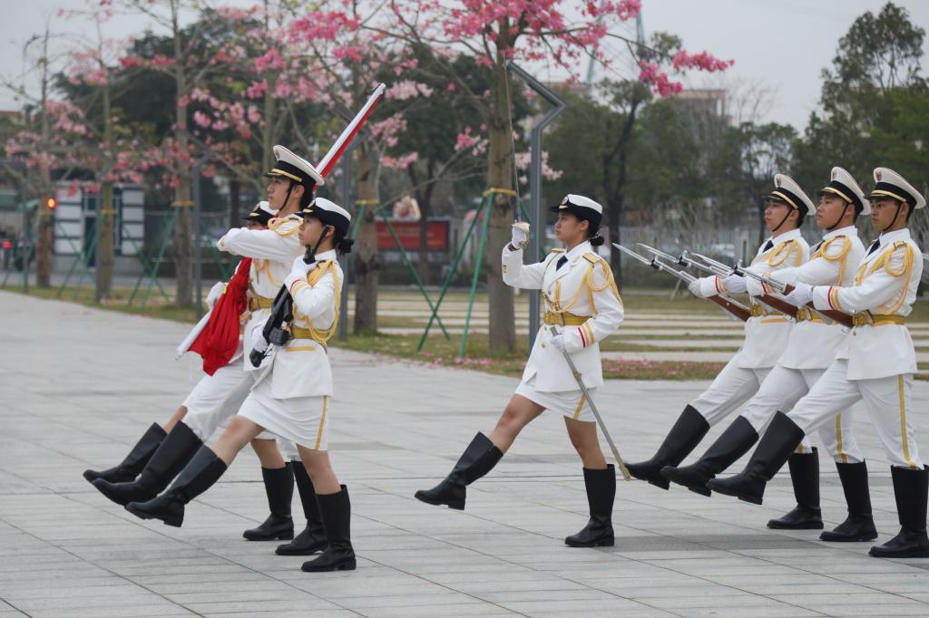 随着升旗礼毕,悠扬的校歌《蔚蓝之歌》缓缓响起。全体师生并肩而立、齐声合唱,熟悉的旋律萦绕耳畔,“碧海旭日辉映南疆,海大精神育我成长”等歌词深深镌刻着学校的精神印记,声浪阵阵,激荡人心!