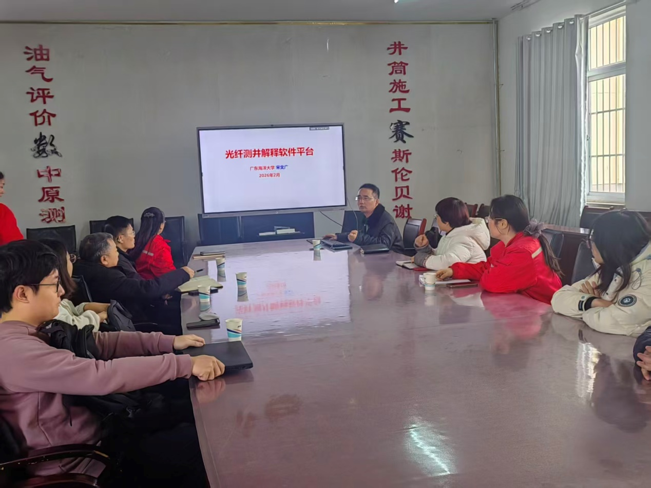 2026年2月6日,在广东海洋大学阳江校区领导的指导和计算机科学与工程学院领导的帮助下,宋文广教授带领科研团队研制的“分布式光纤监测(DTS&DAS)解析软件平台”,在中国石化经纬有限公司中原测控公司,进行科研成果宣传。
