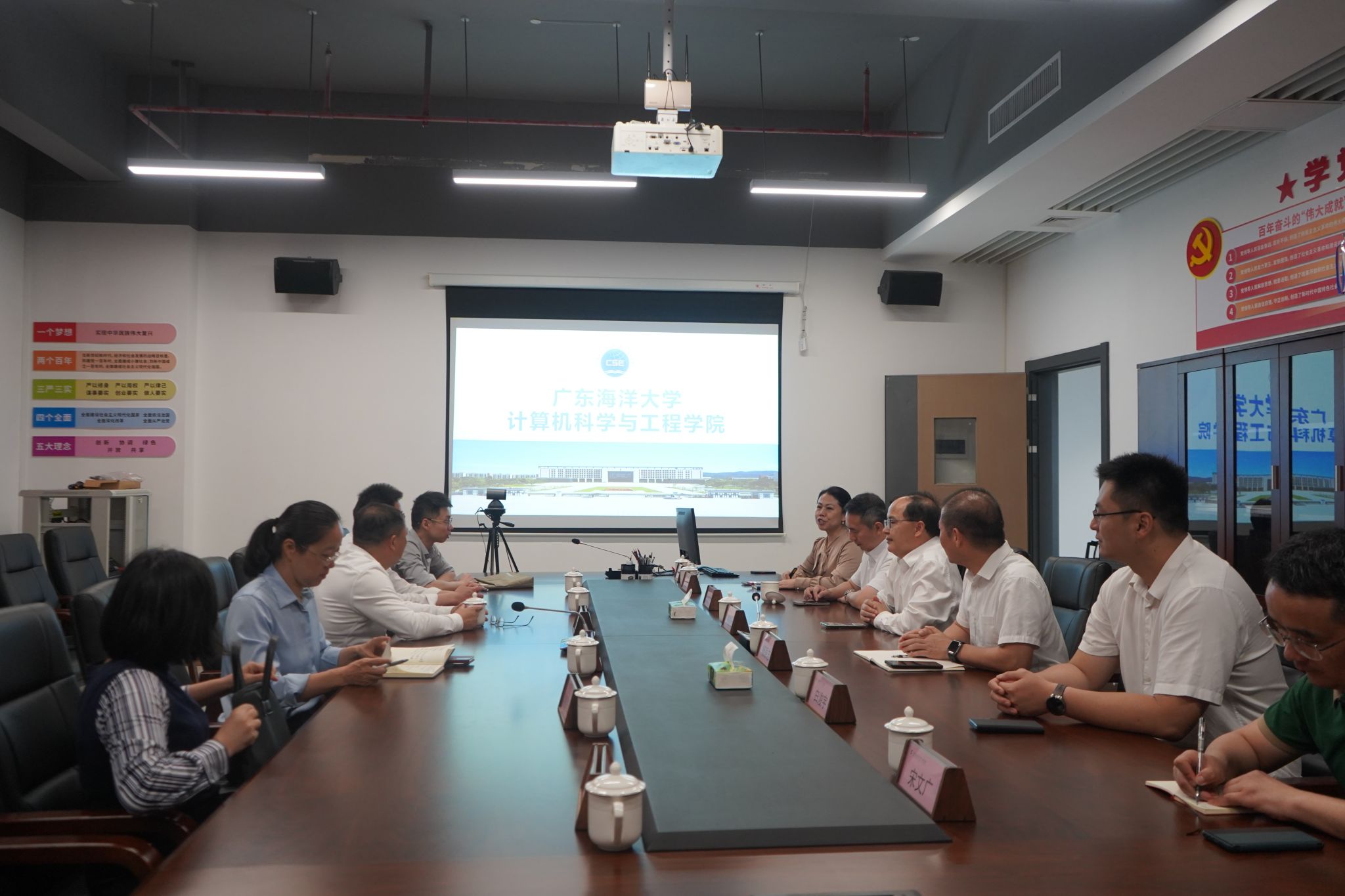 3月27日上午,佛山大学副校长曾新安、阳江市科技局局长韩定安一行莅临计算机科学与工程学院开展座谈交流。广东海洋大学党委常委、副校长,阳江校区党委书记、管理办公室主任周昌仕,阳江校区党委副书记麦冬宁,计算机科学与工程学院党委书记杨原志,校区党委委员、管理办公室副主任、教学科研部部长白浚宇,计算机科学与工程学院副院长赵男男及学院教授代表出席本次座谈。