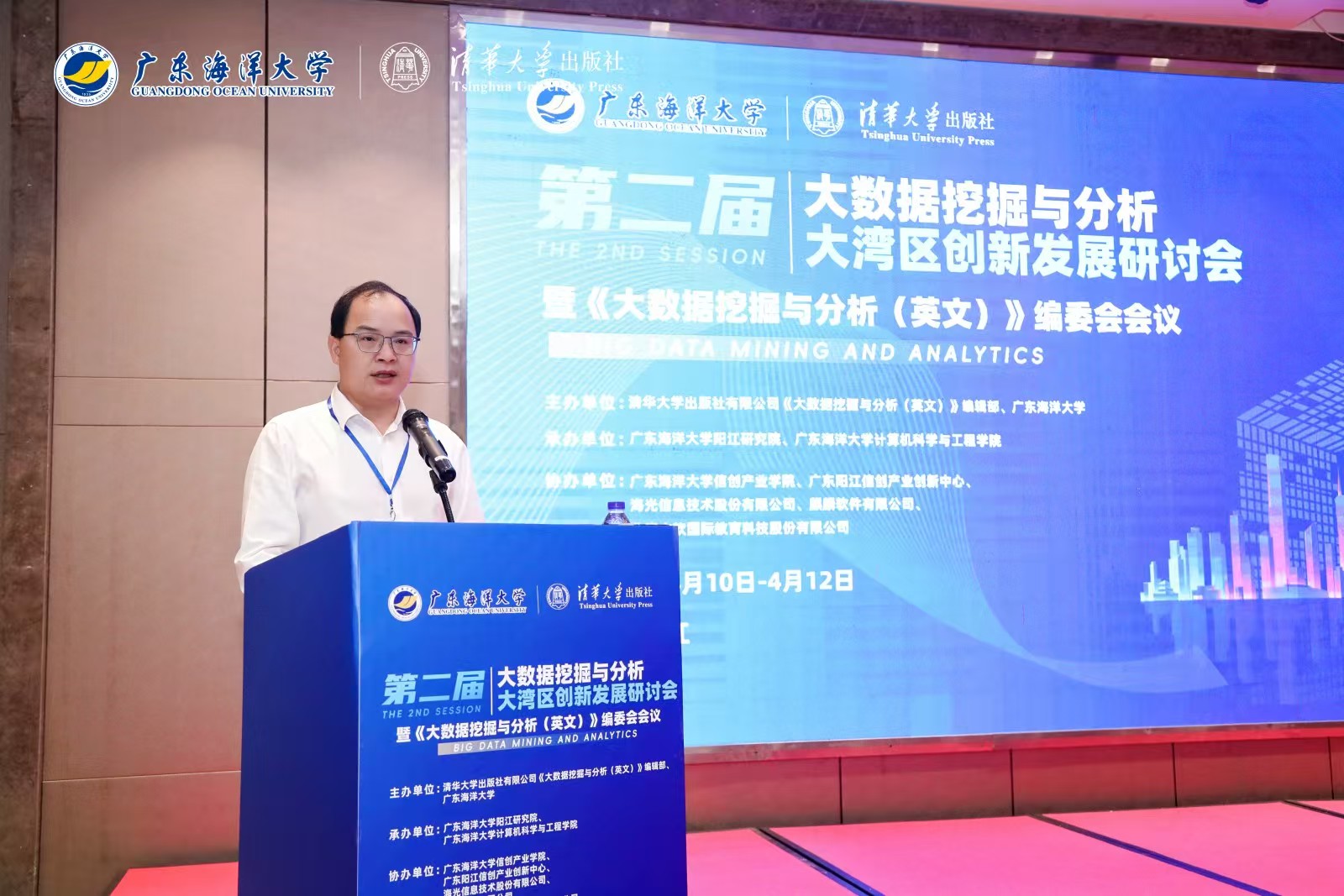 4月11日,由我校与清华大学出版社有限公司《大数据挖掘与分析(英文)》编辑部联合主办,阳江研究院、计算机科学与工程学院承办的第二届大数据挖掘与分析大湾区创新发展研讨会在阳江顺利举行。学校党委常委、副校长周昌仕主持开幕式。