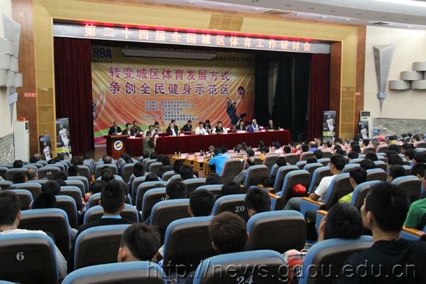 11月23至24日,由国家体育总局群体司指导、全国城区体育工作研讨会主办,湛江市人民政府和广东海洋大学共同承办的第二十四届全国城区体育工作研讨会在我校召开。本次会议的主题是转变城区体育发展方式,争创全民健身示范区。来自国家体育总局、湛江市体育局及全国30多个城区体育部门的与会代表100多人出席会议。广东海洋大学体育与休闲学院近400名师生参加了研讨会开幕式及论文交流会。副校长、体委主任叶春海教授主持开幕式,学校党委书记关志强教授致欢迎词。