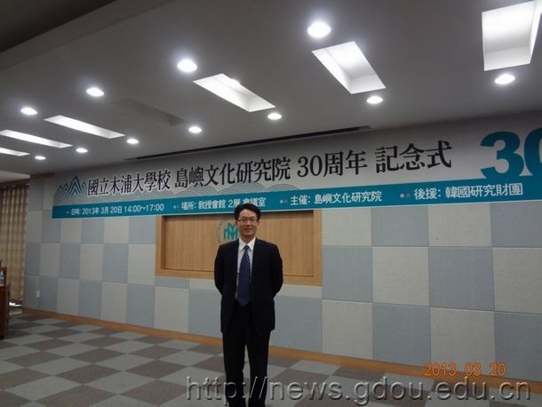 3月20-23日,“岛屿文化研究院创立三十周年纪念国际学术研讨会”在韩国国立木浦大学教授会馆国际会议厅举办,上海海洋大学、浙江海洋学院、泉州海外交通史馆、日本鹿儿岛大学、琉球大学、韩国木浦海洋大学等学校的专家学者与会。应韩国木浦大学岛屿海洋文化研究院邀请,我校思政部主任巩建华教授应邀参会,并在会议上介绍了广东海洋大学海洋文化研究所最近几年的研究成果,共计50多人参加了此次会议。