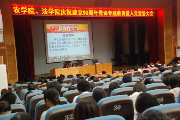 6月21日晚上,校党委副书记张兰英在主校区多功能厅为农学院和法学院的学生党员作题为“为党旗添光彩”党课专题教育报告,农学院党委副书记李国芳、法学院党委副书记聂杰及学生党员400多人参加,报告会由聂杰主持。