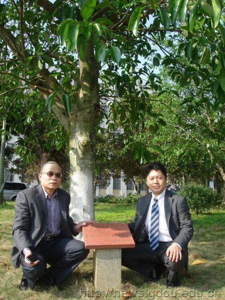 石崎松一郎和章超桦(左)在须山三千三先生友谊树下合影