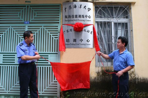 8月17日上午,广东省渔业高级船员培训中心揭牌暨2010年广东省海洋与渔业执法船艇职务船员(驾驶类)培训班开班仪式在我校霞山校区隆重举行,学校副校长陈泽球,广东省渔政总队政委白桦、副总队长高庆营,湛江市海洋与渔业局副调研员赖乔国,省渔政总队渔政渔港监督处处长王慧丰、装备处处长陈福军、船检处处长吴卓龙,湛江市渔政支队队长庞宏明、政委陈广兴和来自全省20个支队、24个大队的53学员,以及航海学院院长毕修颖和部分老师参加了仪式。揭牌和开班仪式分别由毕修颖和高庆营主持。