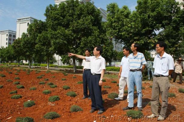 5月24日下午,校长何真在校长办副主任林晓敏的陪同下亲临12、15幢教工宿舍拆除现场和西区绿化现场,指导工作人员施工。何真对综合服务中心近期平整西区的荒地及种植野菊、台湾草及黄皮刚竹等植物表示肯定,对长势良好的黄皮刚竹和树苗感到欣喜。他说,经过改造后的西区风景更美了,他希望综合服务中心、后勤管理处等部门克服各种困难继续做好校园绿化美化工作,以崭新的面貌喜迎2010级新生的到来!