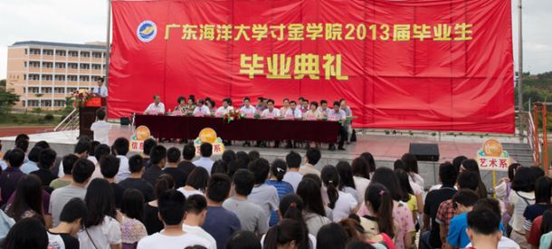6月22日上午,寸金学院2876名2013届毕业生迎来了他们学有所成的重要时刻,2013届寸金学院毕业生毕业典礼隆重举行。广东海洋大学校长何真、副校长陈泽球、校办主任林晓敏,学院董事会董事长李巧、湛江寸金教育集团常务副总经理孙书才,寸金学院院长何春林、党委书记邓伟、副院长李娟芳、党委副书记韩宇及学院中层领导干部、毕业班全体辅导员、班主任参加了典礼。