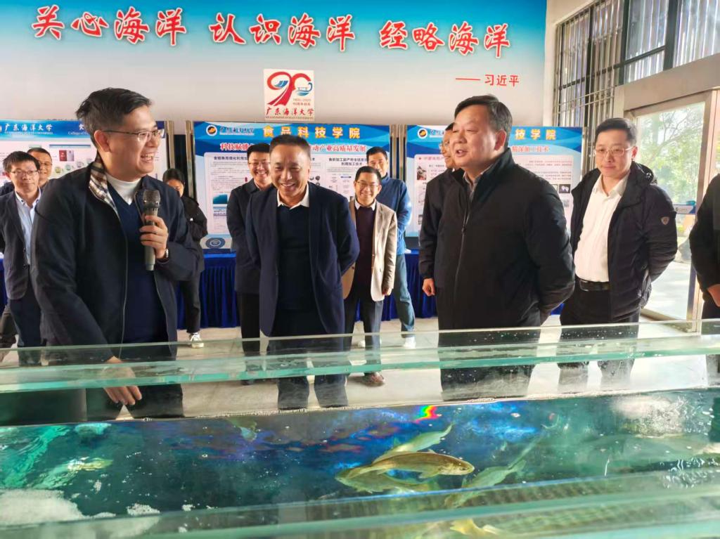 1月7日,省发展改革委副主任、省大湾区办常务副主任朱伟率队到我校调研,深入了解学校服务广东海洋经济高质量发展的举措与成效。湛江市委常委、常务副市长牟治平,湛江市发改局等有关单位负责人陪同调研。学校党委常委、副校长宁凌,以及党政办公室、科学技术部、水产学院、食品科技学院、管理学院、创新创业学院等单位负责人参加调研活动。