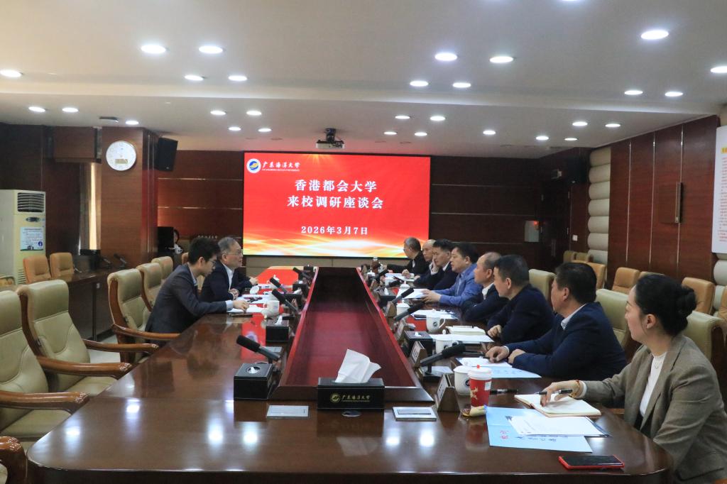 3月7日,香港都会大学校长林群声一行访问我校。学校党委副书记、校长刘文华,党委常委、副校长邓逢光在湖光校区行政楼五楼会议室会见来宾并举行座谈会。学校党政办、教务部、科技部、研究生院、国际交流合作部和继续教育学院等部门负责人参加。