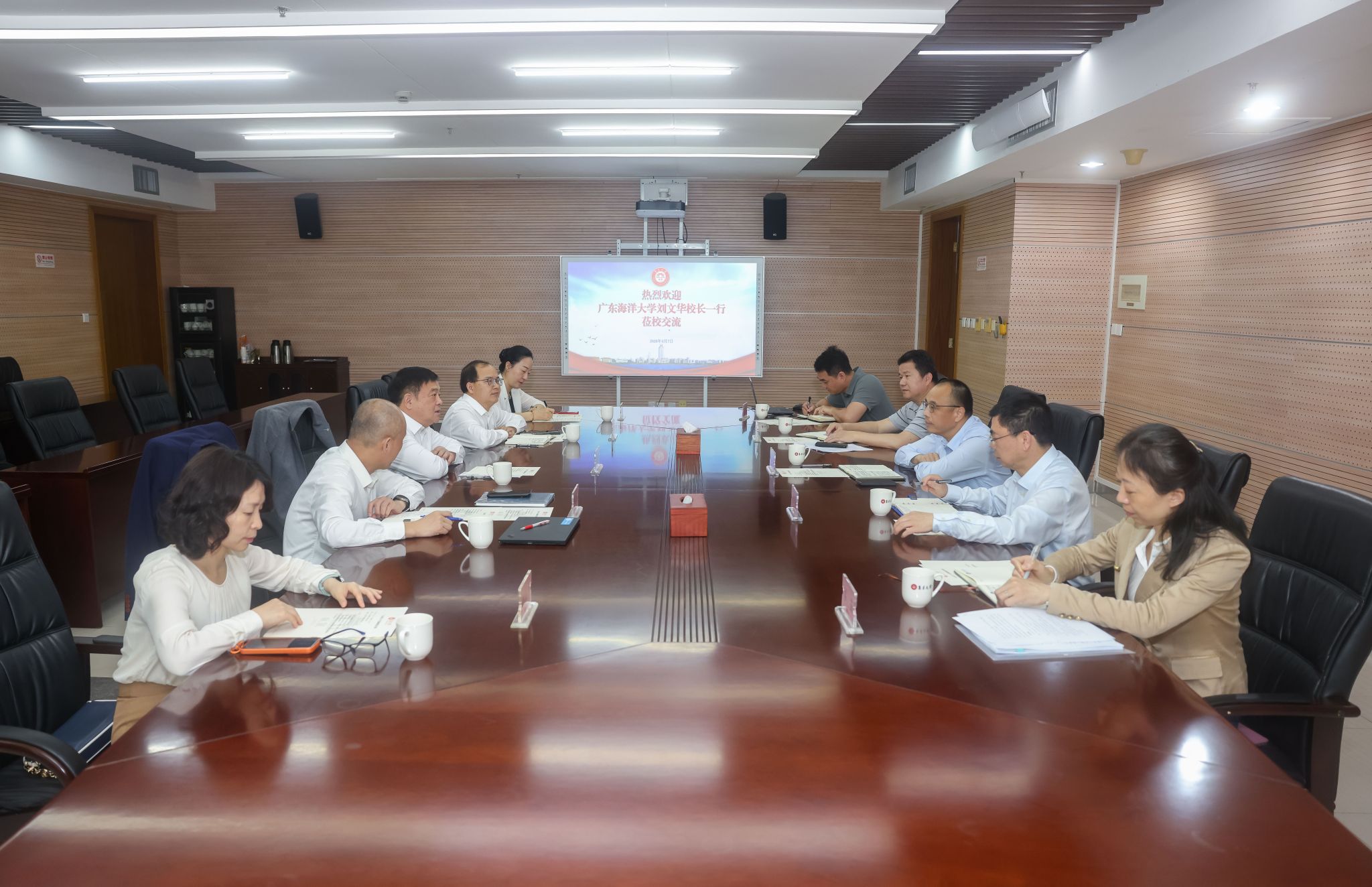 刘文华对集美大学的接待和经验分享表示感谢,随后介绍了广东海洋大学的办学特色、学科优势及研究生教育、科研平台建设基本情况,重点阐述了学校在学位点动态优化、研究生规范化培育提质、科研创新平台协同赋能等方面的建设思路,强调将立足海洋特色,借鉴先进经验,推动学校高质量发展。
