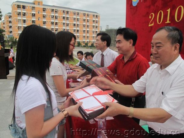 副院长李娟芳宣读了学院关于颁发2010届毕业生毕业证和学位证的决定。党委书记杨今福宣读了关于表彰2010届优秀毕业生的决定。何真校长、陈泽球副校长、何春林院长与杨今福书记一起为毕业生颂发毕业证书、学位证书和优秀毕业生荣誉证书。