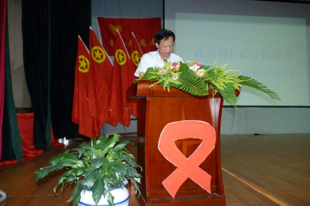 5月12日,政治与行政学院主办的《“情暖湛江”走进海大暨天马人龙志愿服务队启动仪式及“预防艾滋病 共建美好校园”知识讲座》在主校区多功能厅隆重举行。共青团湛江市委领导、情暖湛江志愿者协会代表前来祝贺,校党委委员、宣传部部长卢仕严,校团委书记尹喜为志愿服务队代表授旗。学院党委书记张建刚、副书记陈金水和院长助理巩建华以及来自各学院的师生代表400多人参加了成立大会暨启动仪式。