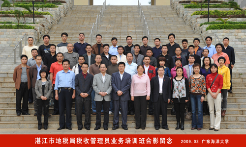 3月5日,湛江市地税局税收管理员(第一期)业务培训班开班典礼在主校区钟海楼举行。湛江市人大常委会副主任、广东海洋大学副校长、教授朱坚真博士出席典礼。典礼由继续教育学院索庆华主持,朱坚真发表讲话,湛江市地税局领导、市下属各县(市)局等11个单位44名学员参加了典礼。