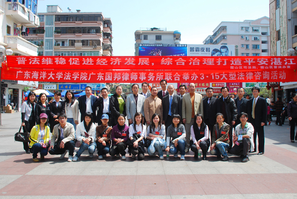 此次活动的法律咨询团分别由广东国邦律师事务所、霞山区普法办和法学院共同派出的25名专家律师组成,并有65名学生党员和学生志愿者组成了13支普法宣传小组。他们分别奔赴霞山多个大型商场开展了形式多样、内容丰富的普法宣传活动,共为市发放了6000多份普法宣传单,完成了400多份消费者和经营者问卷的调查和统计。