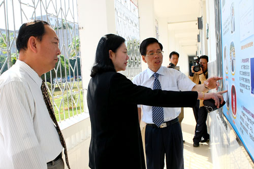 在听取汇报前后,罗副厅长还考察了位于霞山校区的南海水产经济动物增养殖重点实验室、水产经济动物病原生物学及流行病学重点实验室,考察了位于主校区的水产品深加工重点实验室、海洋资源与环境监测中心,参观了建设中的物理海洋楼。罗副厅长在考察过程中强调,申博各考察点和展览的介绍务必简明扼要,突出重点,使人一目了然。