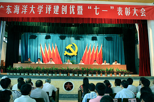 6月25日下午,学校在霞山校区礼堂隆重举行评建创优暨“七一”表彰大会,对“评建排头兵”先进集体和先进个人以及一批先进基层党组织、优秀共产党员和优秀党务工作者进行表彰。全校教职员工和学生代表们汇聚一堂,共同庆祝党的87岁生日,庆祝我校本科教学评估获优,为申博增硕鼓劲加油。校领导刘卫国、何真、潘泰、吴灶和、陈泽球、章超桦、叶春海、朱坚真出席了大会,党委副书记、工会主席潘泰并主持大会。副校长叶春海、校长何真、校党委书记刘卫国先后在会上发表了讲话,副校长吴灶和宣读了表彰决定。