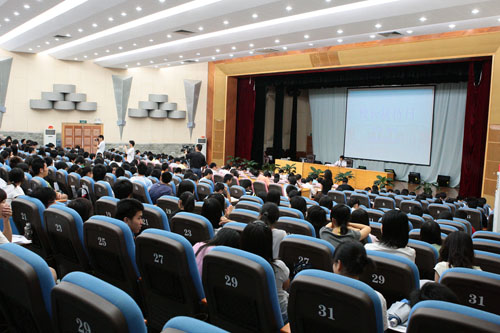6月19日下午,何真校长在主校区多功能厅主持我校08年6月校长接待日。各学院分管学生工作的领导、有关单位部门领导、后勤实体负责人以及学生代表共400余人参加。