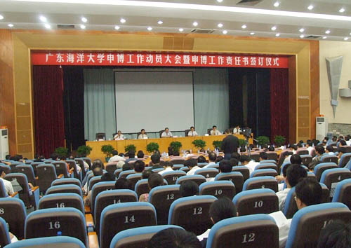 何真指出,成为博士授权单位,对提高学校的社会地位有着重要影响,是一个重大的战略问题,是我校成为教学科研型大学的必由之路,是学校发展的重要平台,是增强科研实力的基本条件,是我校培养高层次海洋科技人才使命的必然要求,对于我校提高办学层次,打造高水平科研团队,争取重大课题,吸引拔尖人才,增强整体科研实力,提升服务广东海洋经济发展的能力,都具有重大意义。因此,一方面我们要认清申博的严峻形势,认识到自身存在的不足,切实增强危机意识和紧迫感,另一方面也要看到学校在地域布局、学科特色、面向国家经济建设和直接服务经济强省、条件基本具备、备受领导重视等方面的优势,拿出“舍我其谁”的气概,坚定信心,“咬定青山”,知难而进。