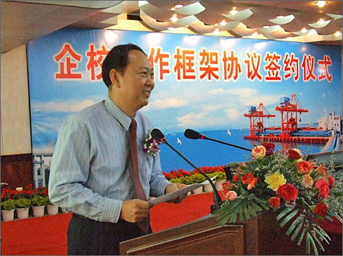 张翼总裁指出,双方将在平等互助、共谋发展的基础上建立全面的、长期的友好合作关系,在海洋运输、现代仓储中转以及临港工业建设等多个领域进行优势互补、资源互助。湛江港集团将全力为我校提供一个良好的社会实践和资源开发的平台。