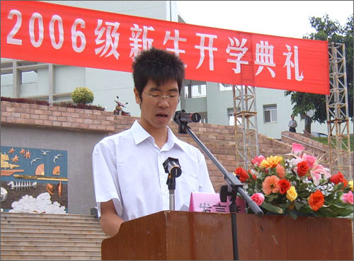 9月11日上午,学校在主校区中心广场举行盛大开学典礼,热烈欢迎4000余名2006级新同学。学校领导刘卫国、何真、容景春、潘泰、吴灶和、陈泽球、章超桦、叶春海、朱坚真集体出席了典礼。何真校长发表了热情洋溢的讲话,代表全体师生员工欢迎新同学的到来。容景春副书记主持了典礼。
