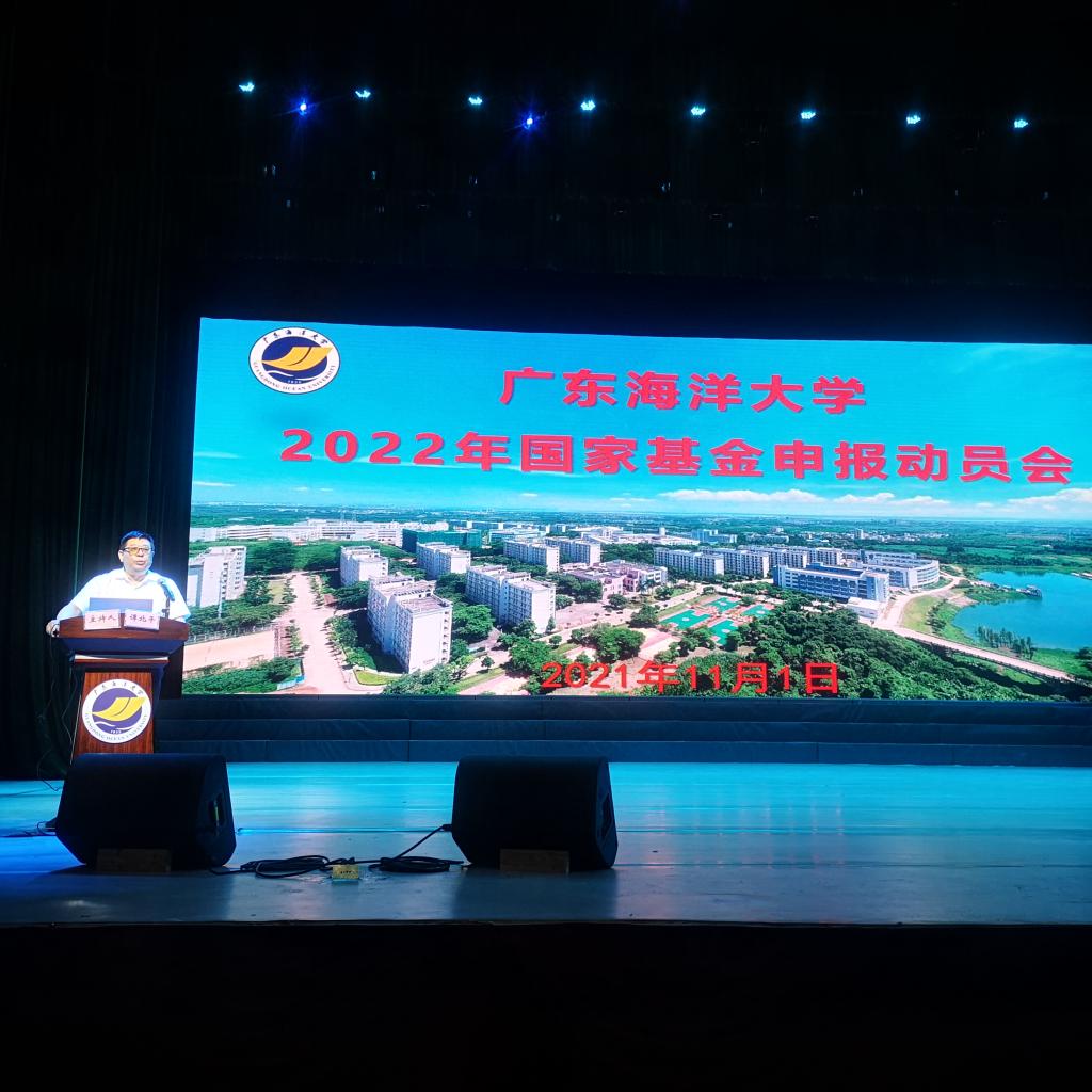 11月1日下午,学校在中歌艺术学院实验剧场举办了“广东海洋大学2022年国家自然科学基金申报动员会”,相关学院领导、教授、副教授和博士等科研骨干教师参加了现场会议,阳江校区、深圳研究院组织教师观看线上会议,线上线下共计860多人次参加了动员会。会议由副校长谭北平主持。