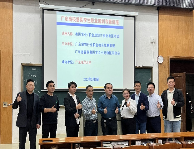 3月3日,为提高我校动物医学专业学生的专业认识度、加强在校学生职业规划建设工作,滨海农业学院动物医学系特邀请广东宠物行业职业教育战略联盟和广东省畜牧兽医学会小动物医学分会来我校对学生进行了“高校兽医学生职业规划专题讲座”交流活动。本次活动讲师团由广东省畜牧兽医学会小动物医学分会会长、华南农业大学兽医学院石达友教授领衔,同时还有广州它经济人才发展有限公司、领航连锁宠物医院、深圳桥生医疗器械科技有限公司、广州宠加爱科技有限公司及广东海洋大学临床教学动物医院等多家企业负责人参加。此次宣讲团主要目的是向我校动物医学专业在校学生进行“兽医学业/职业规划”并对推行及奖励“执业兽医资格考试”进行宣讲。