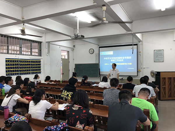 5月22日中午,中歌艺术学院在美术楼302召开校园安全与稳定专题工作会议,全体班主任老师及全体辅导员老师参加,学院党委副书记农康主持本次会议。