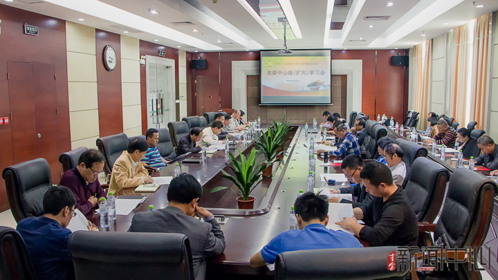 4月18日下午,寸金学院党委中心组在行政楼十二楼会议室举行扩大学习会议,集中学习传达2018年全国“两会”精神、习近平总书记在参加十三届全国人大一次会议广东代表团审议时的重要讲话精神、广东省教育工作会议精神。寸金学院党政领导班子,全院各单位、部门党政负责人,直属党支部书记参加了学习。党委书记谭树明主持了学习会。