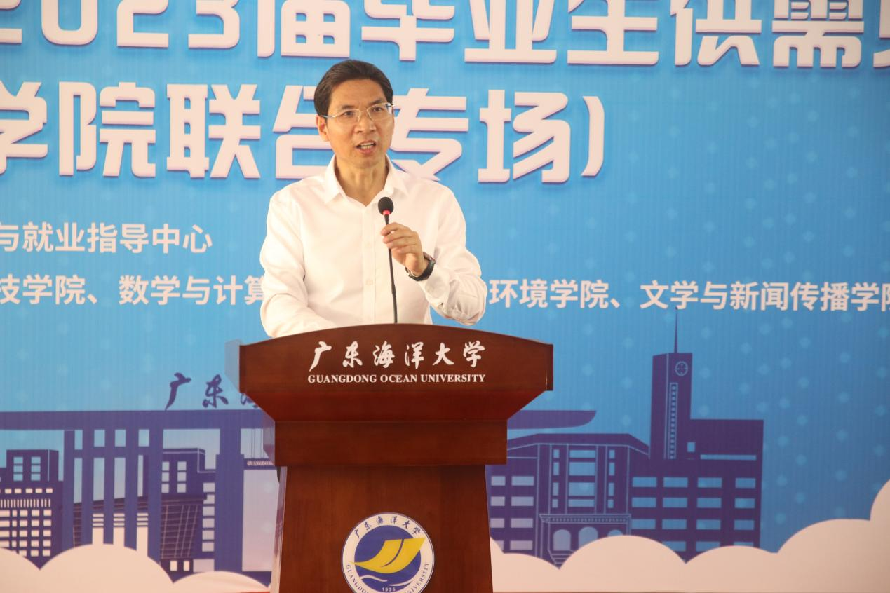 校党委副书记林晓敏致开幕辞。他简要介绍了学校的发展情况与2023届毕业生的就业情况,强调“国以人兴,政以才治”,对各学院、用人企业、毕业生提出了三点希望:一是希望各学院进一步深化校企合作,积极对接企业人才需求,搭建好供需双方的桥梁,助力我校毕业生高质量就业;二是希望企业为高质量发展储备高质量人才,充分挖掘学生的潜力,最大限度招收接纳我校毕业生,用心用情用力用好人才,留住人才,实现经济发展和扩大就业的并举双赢;三是希望毕业生转变观念,树立正确的就业观,既要仰望星空,更要脚踏实地,及时适当调整就业预期,先就业再择业,勇于到企业一线和艰苦的岗位去锻炼,敢于到新的行业去打拼,以诚实的劳动和出色的业绩成就人生价值。随后,深圳市讴旎科技有限公司总经理、我校优秀校友吴宏杨作为企业代表作了发言。他感恩母校的培养,结合自身奋斗的历程深刻阐释海大精神,并勉励求职的学生要积极就业,投身企业一线贡献青春力量。开幕式上,管理学院、食品科技学院、数学与计算机学院与部分参会企业签订了共建教学实训就业基地协议,并进行了授牌仪式。