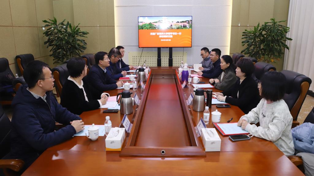 在中国海洋大学,学校党委常委、副校长王雪鹏出席座谈会,对谭平一行表示欢迎,介绍了学校基本情况。他表示,当前学校正深入学习宣传贯彻习近平总书记给学校全体师生的重要回信精神,希望双方发挥海洋学科特色优势,共同为建设教育强国、海洋强国作出更大贡献。谭平对中国海洋大学一直以来的支持和帮助表示感谢,向中国海洋大学建校100周年表示祝贺。她表示,中国海洋大学办学特色鲜明,在服务国家海洋强国建设方面走在前列,在校庆文化宣传方面成果丰硕,校庆志愿服务组织高效有力。明年广东海洋大学将迎来建校90周年,希望学习借鉴成功经验,进一步深化合作,实现共赢发展。中国海洋大学党委宣传部、校团委负责人分别介绍了学校宣传、团学工作情况。与会人员围绕校庆文化宣传、校庆志愿服务等工作作了深入交流。