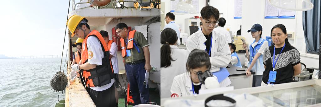 本次大赛设置海上观测与实验室技能比拼两大核心模块。9月27日清晨,参赛队伍乘坐我校“天龙号”科考船驶入湛江湾附近海域,展开多项海上观测实践科目。次日,比赛转场至我校海洋与气象学院实验室完成编程及绘图科目、海水样品常规参数测定、岩心样品的分析。为期两天的比拼决出了最终成绩,前五名的队伍将代表南部赛区参加11月中下旬在中国海洋大学举办的总决赛。