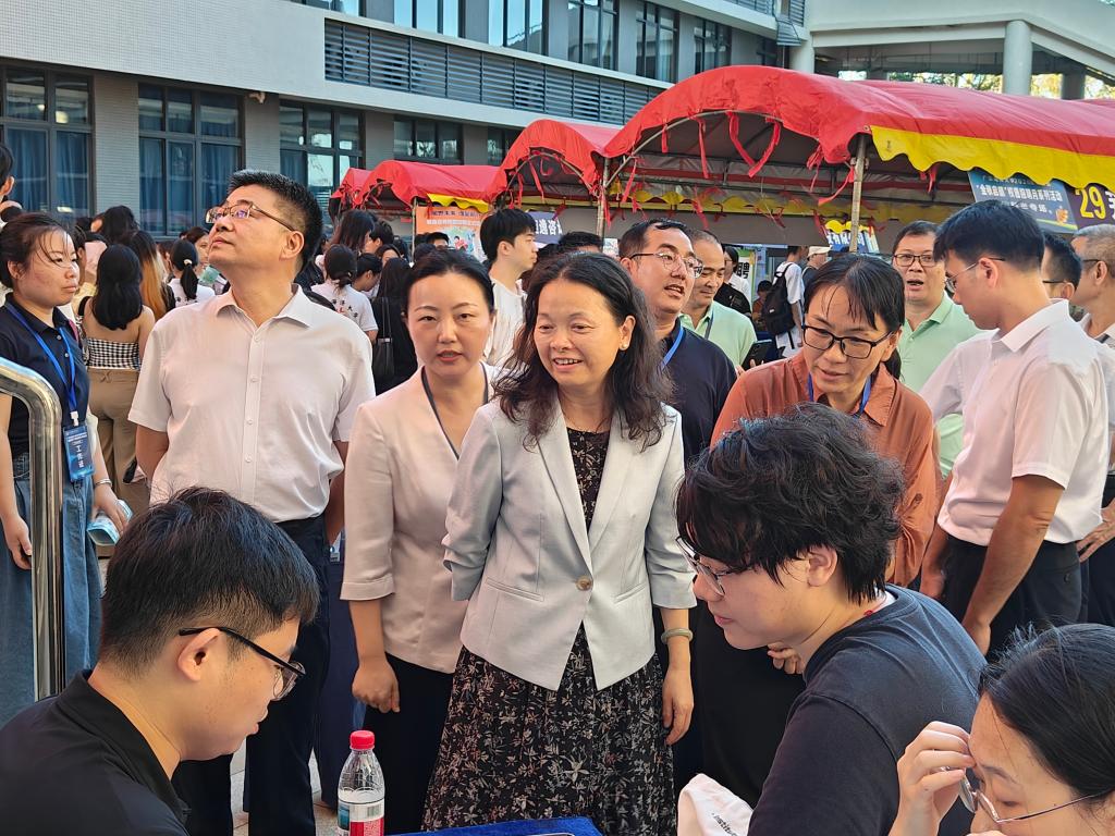 为深入贯彻落实教育部主题招聘月活动部署,10月17日,由我校招生与就业指导中心主办,外国语学院、管理学院、经济学院、文学与新闻传播学院、法政学院、中歌艺术学院联合承办的2026届毕业生“金秋启航”校园招聘月系列活动-文科类专场双选会在博文楼一楼举办。学校党委副书记谭平,学工部部长郑一鸣到场指导,体现了学校对毕业生就业工作的高度重视。