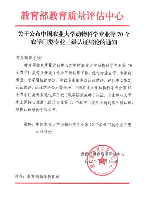 近日,教育部教育质量评估中心公布了全国首批农学门类专业三级认证结论,我校水产学院水产养殖学专业正式通过第三级认证(国家级一流本科专业认证),成为全国70个首批获此认证的农学门类国家一流专业之一,也是我校首个通过国家级一流专业三级认证的专业,标志着水产养殖学专业建设水平跻身全国一流行列。