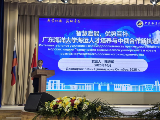 会上,陈进军作了题为《智慧赋能,优势互补:广东海洋大学海运人才培养与中俄合作新机遇》的报告,向与会嘉宾介绍了我校的基本情况、办学特色,并从“安全”“绿色”“智慧”三个维度阐述了我校在海运人才培养方面的探索与实践。他表示,希望与参会的中俄高校在师生交流、联合培养、科技攻关、协同创新、“北极航道”联合实验室建设、智能(绿色)船舶技术等领域开展务实合作,共同绘制中俄海运领域高等教育合作新蓝图。报告内容引发了中俄交通、水运、海事、海洋类高校、企业及地方政府代表的广泛关注和热烈讨论。