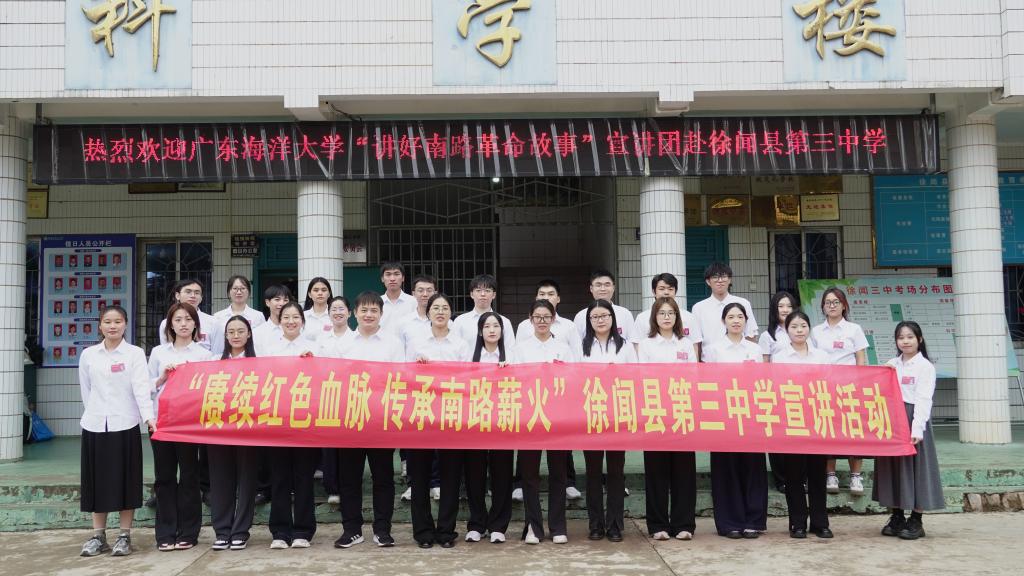 为纪念红军长征胜利89周年,缅怀革命先烈、传承红色基因,推动“双百行动”走深走实,10月30日,我校“讲好南路革命故事”宣讲团28名师生赴徐闻县第三中学与徐城镇第二小学,联合开展“‘讲好南路革命故事’宣讲进校园暨纪念红军长征胜利89周年”主题活动。