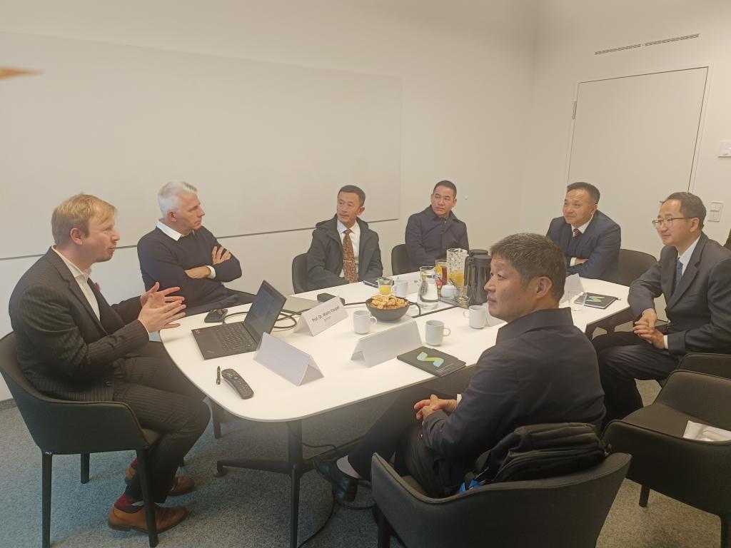在斯泰恩拜尔大学,代表团与该校校领导座谈,双方围绕人工智能、机器学习、进化计算、自然语言处理和计算机视觉等核心领域及其在汽车、医疗和能源等行业开展的“AI+制造”应用研究进行交流探讨。会上,宁凌表示,两校将在共同感兴趣的领域建立创新合作通道,在创新型人才培养、创新实践平台建设、创新技术转移、联合青创项目等方面开展合作,共同推动人工智能技术的发展与跨学科合作。