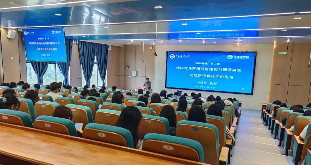 11月18日上午,外国语学院在博文楼A302报告厅举办“海语博谈”第三期讲座,主题为《我国对外新闻话语建构与翻译研究——功能路径翻译视角》。本次讲座特别邀请中国英汉语比较研究会语言服务研究专业委员会会长、教育部高等学校英语类专业教指委委员司显柱教授担任主讲,学院师生共160余人到场聆听,讲座由学院党委书记刘艳主持。
