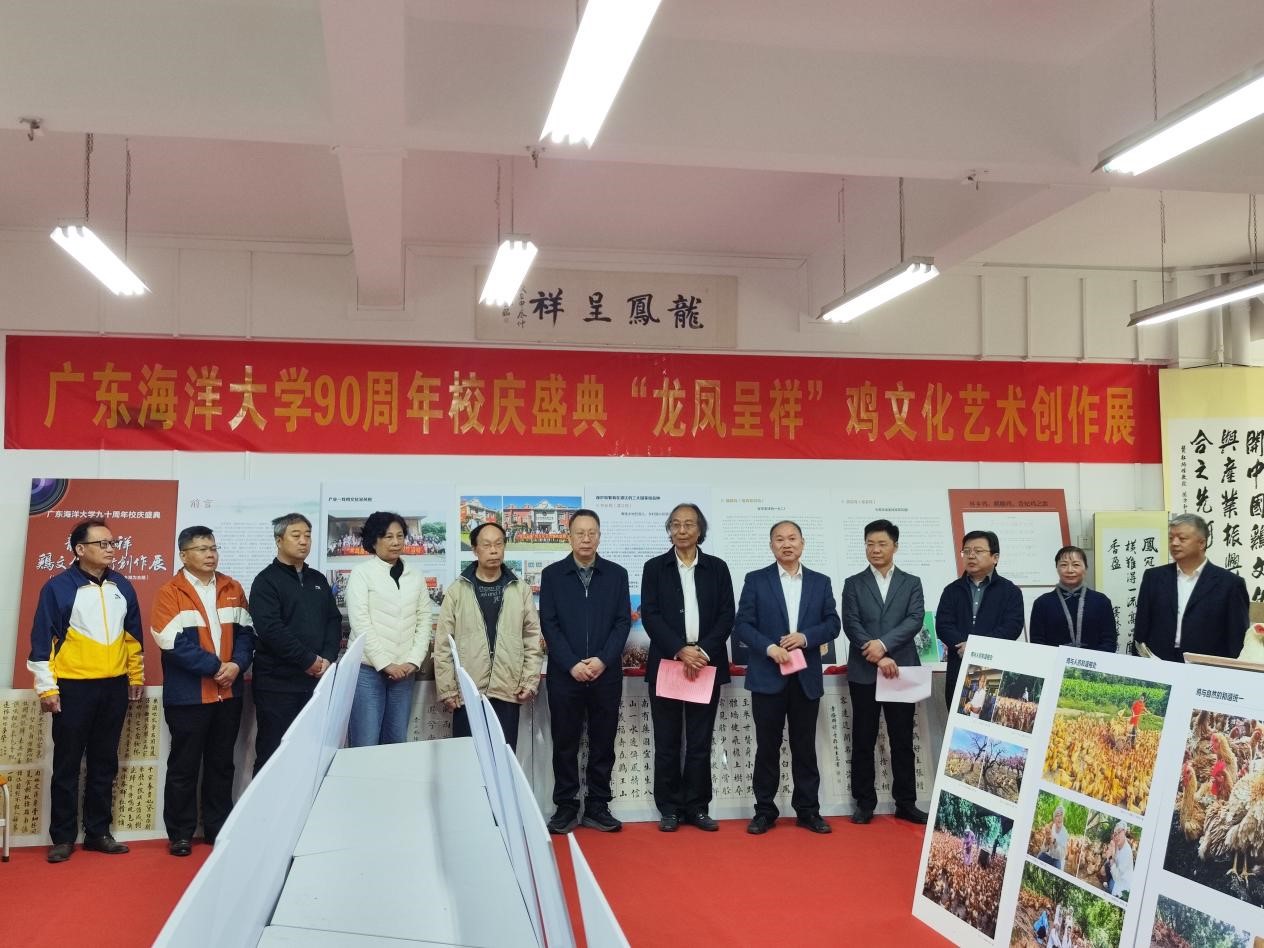 11月20日,滨海农业学院在湖光校区兴农楼312室举办以“龙凤呈祥”为主题的鸡文化艺术创作展。我校党委常委、副校长邓逢光,校关工委主任彭权群,国民健康膳食营养研究室主任孟祥兵,岭南师范学院艺术学院院长李吾铭,滨海农业学院院长马驿、党委副书记王继全以及湛江市相关社会团体单位领导、学院师生代表参加活动。展览活动由马驿主持。