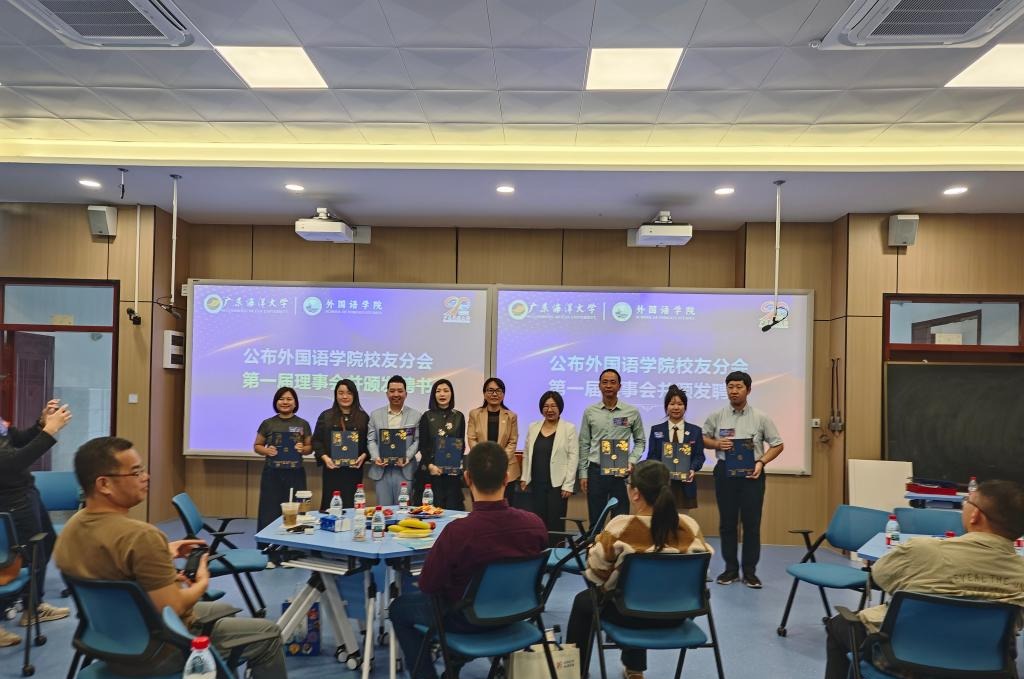随后,会议宣读《学校关于外国语学院校友分会成立批复》,公布外国语学院第一届理事会名单,领导为理事会成员颁发聘书。理事们表示将凝聚校友力量,助力学院发展。同时,会上还举行了校外创新创业导师聘书颁发仪式,邀请了行业优秀校友及专家为学子赋能。受聘导师承诺将通过多种形式提升学生专业与实践能力。