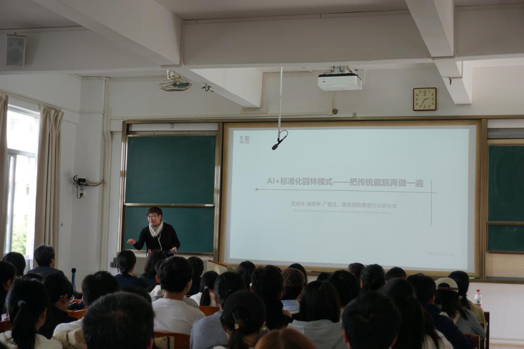 作为建校90周年园林系系列活动的重要环节,本次分享会聚焦园林学科创新发展与就业导向。深圳睿道景观公司董事长、高级工程师刘清彬以全运会景观设计为案例,解析岭南非遗技艺与现代景观设计的融合路径,强调“文化传承与创新并重”的行业使命;广州市尚景生态景观有限公司董事长、国家一级花境师方中健从景观经济视角出发,探讨生态修复、现代农业科技等领域的跨界实践,提出“以经济学思维赋能园林设计”的新思路;广东慧道溢芳环境科技有限公司董事长何敏桢则聚焦人工智能技术,展示AI与标准化模式如何重构传统园林设计流程,倡导学子“以科技为翼,推动行业升级”。