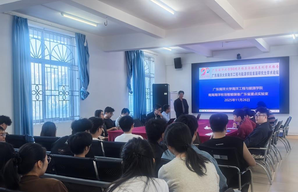本次论坛由海洋工程与能源学院和南海海洋牧场智能装备广东省重点实验室共同主办,是学院为营造研究氛围、增进学术交流、活跃学术思想、拓宽学术视野而精心策划的学术活动。论坛严格依照《广东海洋大学研究生学术论坛工作规范》开展,由学院副院长吴光林教授主持。南海海洋牧场智能装备广东省重点实验室主任严谨教授,学院院长徐青教授,周忠兵、王晓亮、梁正、富经纬等教师代表,以及全体在校研究生共60余人参加活动。