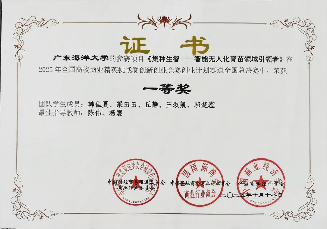 “豆转金移——大豆脲酶赋能土壤健康”“集种生智——智能无人化育苗领域引领者”这两支荣获全国一等奖的项目均为我校经济学院学子打造的优质项目,充分展现了经院学子在创新创业领域的扎实功底与突出潜力。
