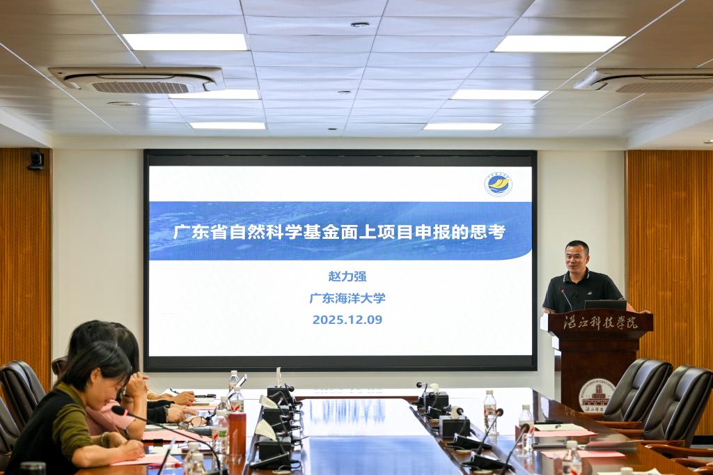 随后,赵力强作了题为“广东省自然科学基金面上项目申报的思考”的专题报告。他从项目负责人视角出发,梳理了申报流程中的关键环节,结合个人成功案例,强调了“本地化研究”与“学科交叉”的重要性。报告结束后,双方分组展开交流,我校专家团队针对湛江科技学院申请人提出的问题逐一解答,内容涵盖申报书选题、撰写技巧、数据支撑及研究基础等实操层面。