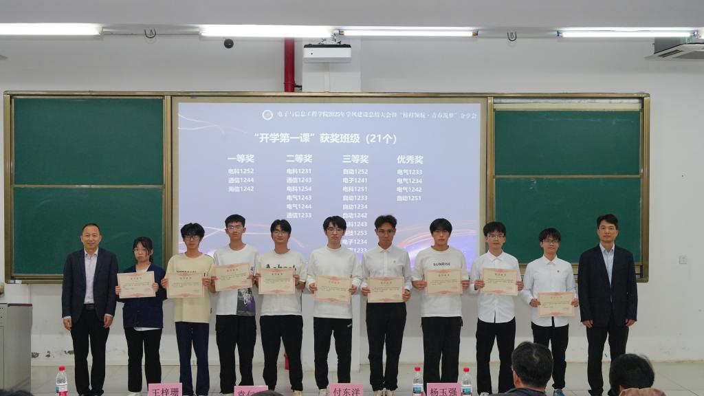 为全面总结2025年度学风建设成效,表彰先进典型,凝聚育人合力,12月10日下午,电子与信息工程学院在明德楼B5302召开2025年学风建设总结大会暨“榜样领航·青春筑梦”分享会。学院原党委书记袁仁广、院长付东洋、副院长杨玉强及各系正副主任、班主任及学工办老师出席,230余名研究生和本科生代表参会,会议由学院党委副书记王梓珊主持。