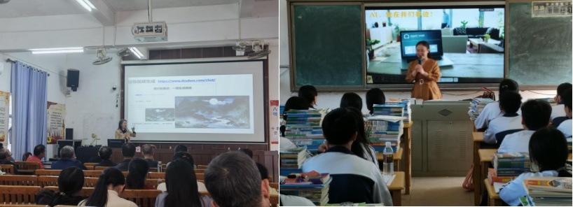 为响应“人工智能+”行动与教育数字化战略,12月4日下午,我校“双百行动项目”团队赴雷州市松竹初级中学开展人工智能专题培训活动,通过专题讲座与科普展示,将前沿AI技术引入乡村校园。
