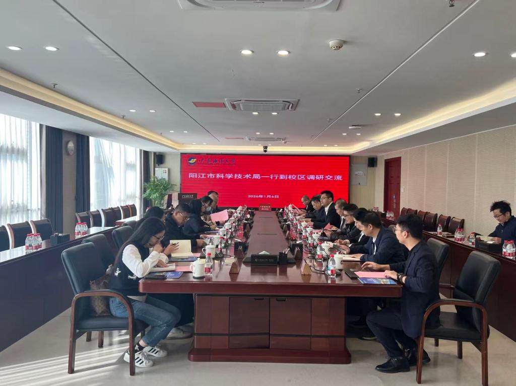 为精准对接高校科研资源与企业发展需求,加速科技成果转化落地,助力阳江产业高质量发展,1月6日上午,阳江市科技局党组成员李红云、阳西县工业和信息化局副局长吴粉、广东美味源香料股份有限公司副总经理袁思强一行到校区调研。阳江校区党委委员、管理办公室副主任兼教学科研部部长白浚宇及教学科研部相关干部参加调研。