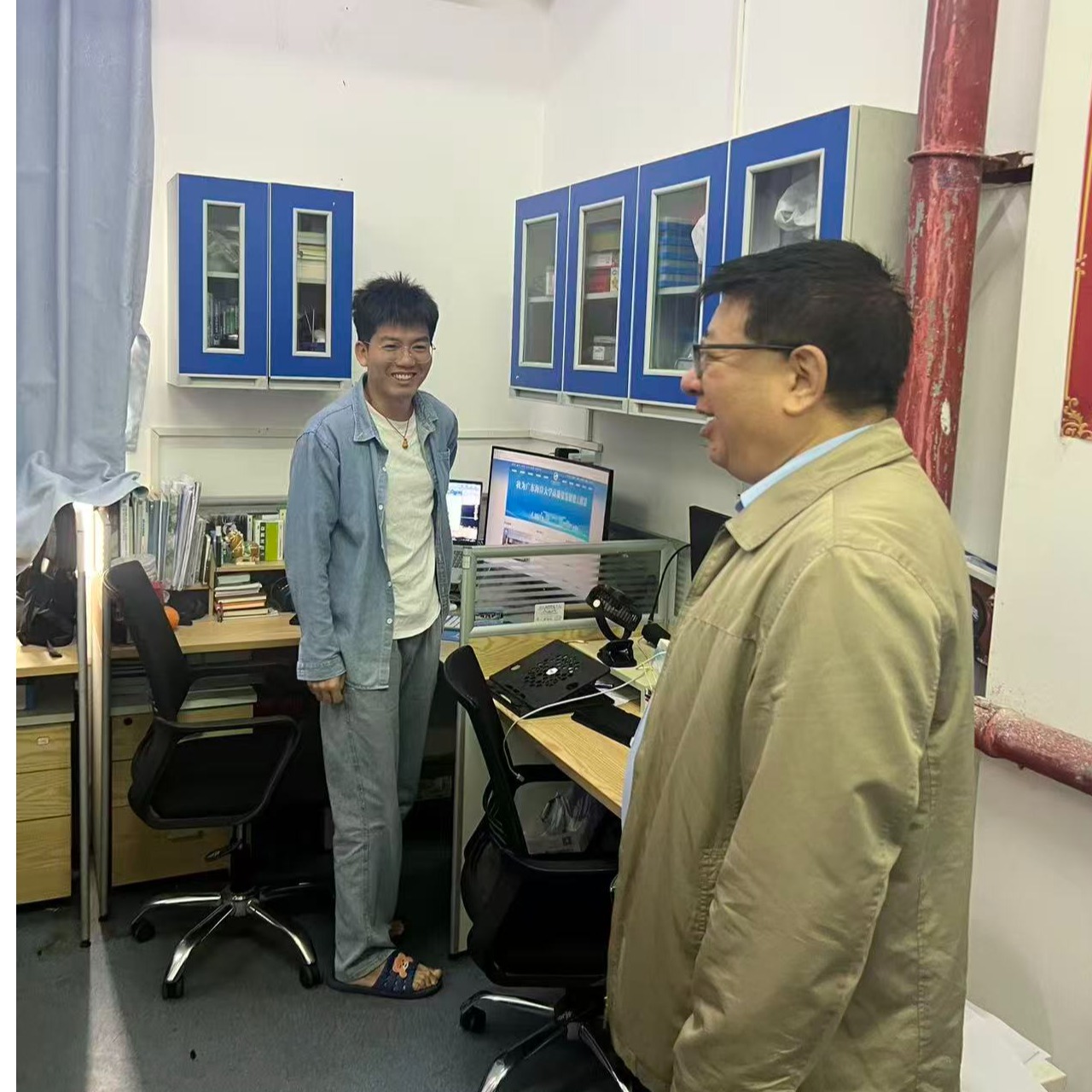 谭北平一行先后走访水产学院、食品科技学院、电子与信息工程学院、海洋与气象学院等学院教学、科研实验室,重点排查水电安全、危险化学品存储与管理、设备运行状态及假期值守安排等关键环节,并深入了解留校学生饮食、饮水等后勤保障情况。谭北平强调,实验室是科研创新的重要阵地,安全是科研工作的生命线,容不得半点侥幸和懈怠。要以"时时放心不下"的责任感,强化措施、压实责任,确保实验室安全工作抓严抓实抓细,为科研工作和校园稳定保驾护航。谭北平与假期工作的师生亲切交流,对教师学生加班工作并辛勤付出予以肯定。他指出要严格规范操作流程,保持实验室整洁有序;离校前务必全面切断电源、气源,妥善保管贵重仪器。期间,谭北平还详细了解师生的假期生活安排与实际需求,叮嘱同学们要牢固树立安全意识,严格遵守实验室、宿舍管理规定,注意用电、防火、防盗安全,合理安排学习与生活,遇到困难及时向学校反映。