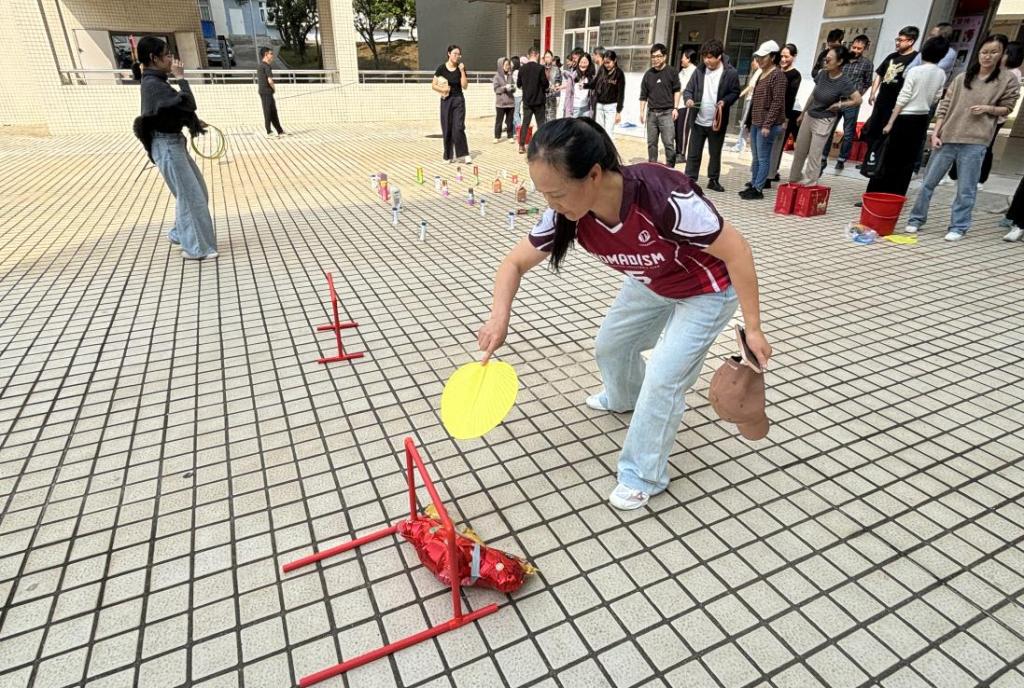 学院工会高度重视此次活动,统筹部署、精心筹备,在活动现场设置多个互动展位,涵盖多个趣味项目。部分男老师也主动参与其中,或协助维持现场秩序,或与女同事、女学生同台互动,充分体现了学院师生间的团结友爱。活动过程中,各展位秩序井然,氛围热烈融洽,充分展现了学院女性师生积极向上、乐观进取的精神风貌。