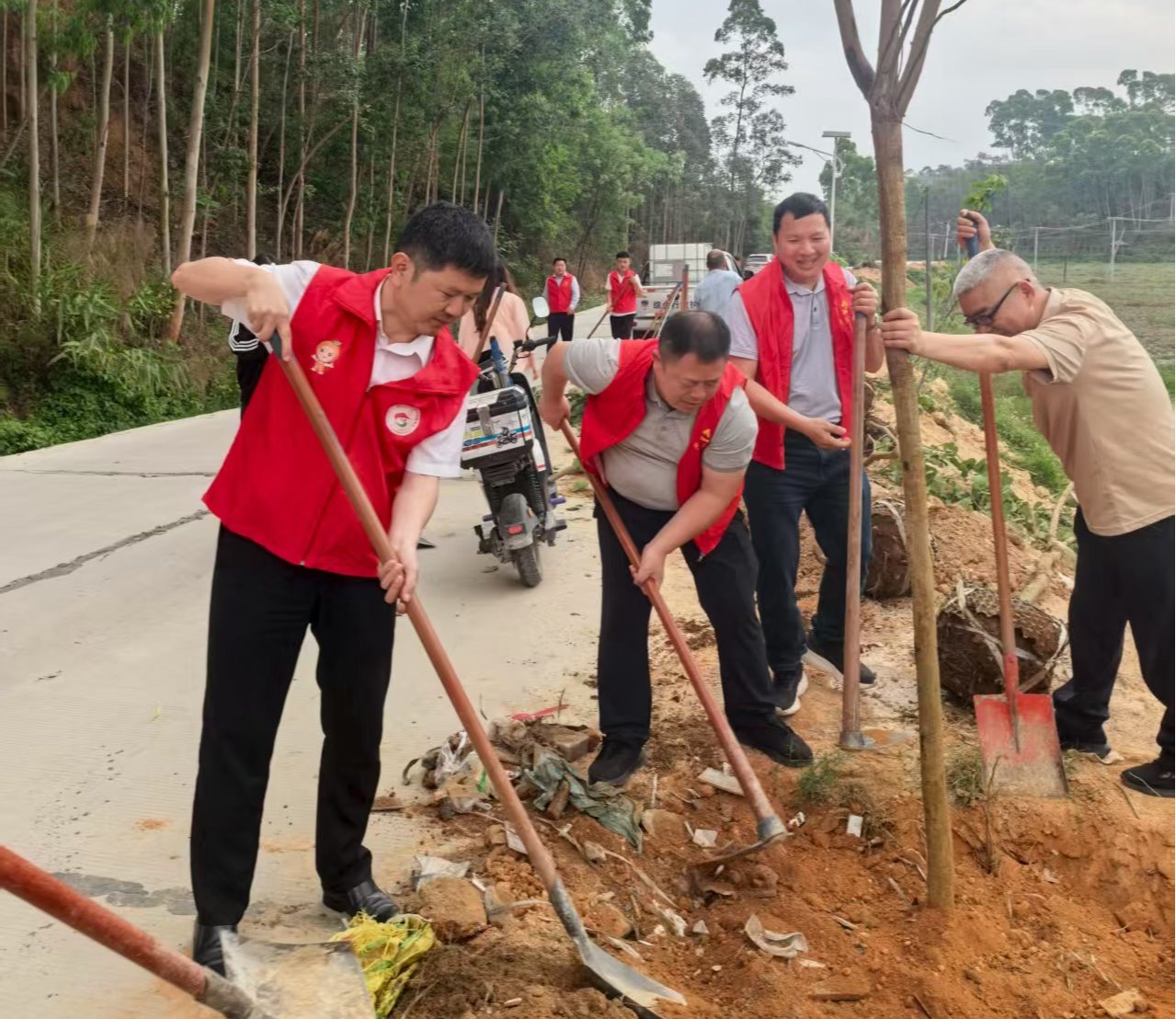 为推进绿美广东生态建设,助力广东省“百千万工程”,3月21日,船舶与海运学院正处级辅导员、党委副书记齐昊一行8人赴廉江市塘蓬镇那榔村开展共建活动。