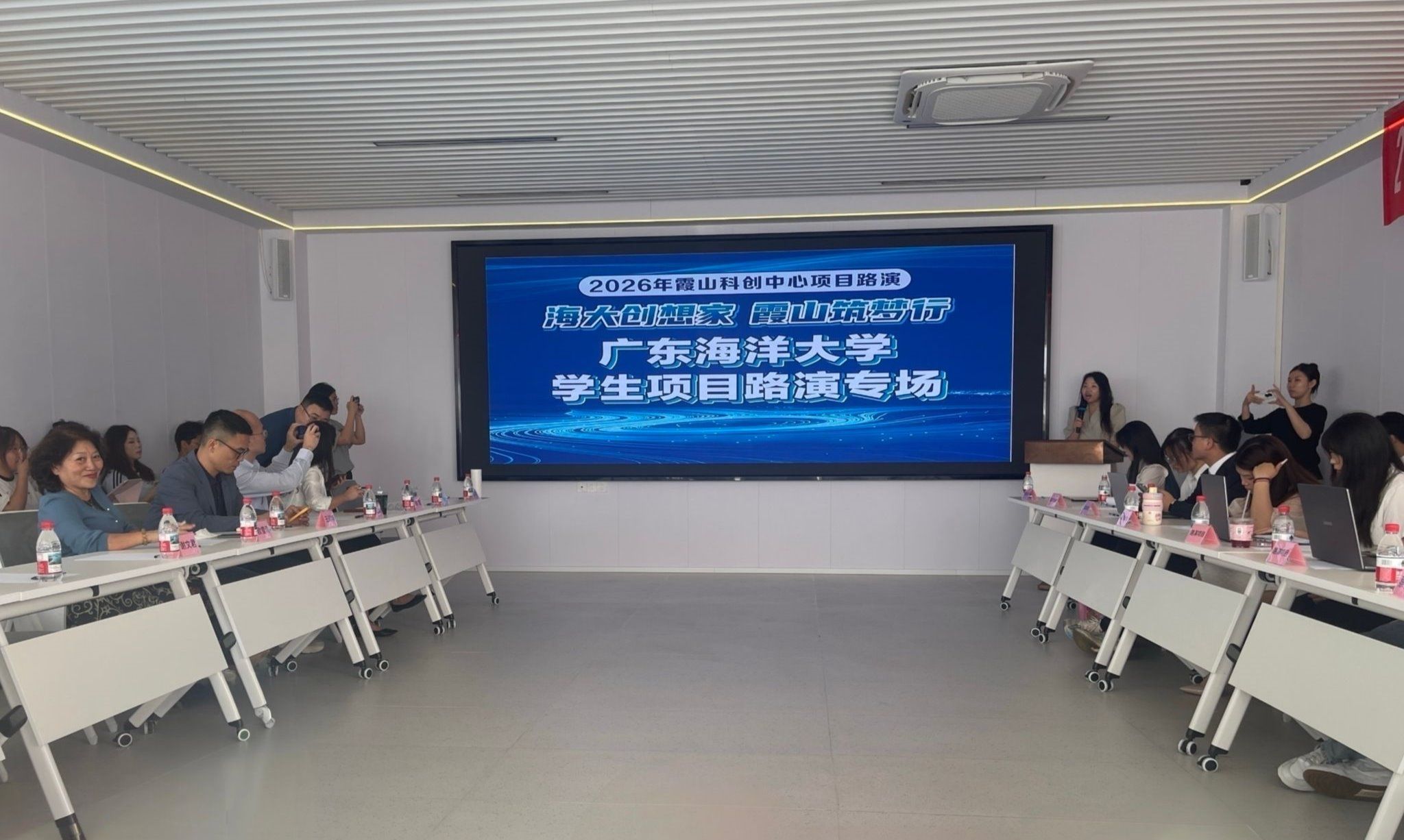 为深化校地协同创新,搭建大学生创新创业成果转化与资本对接优质平台,3月25日,创新创业学院与霞山科创中心联合主办的2026年霞山科创中心项目路演——广东海洋大学学生项目路演专场在霞山科创中心举行。本次活动以“海大创想家,霞山筑梦行”为主题,霞山区发展和改革局、霞山区投资促进局等多家单位协办,霞发资本、纳斯特投资等多家投资机构代表现场参与点评对接。